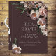 Modern Dark Flower Blossoms Burgundy Bridal Shower Invitation
