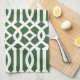 Modern Dark Green and White Trellis Pattern Tea Towel