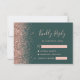 Modern Dark Green Rose Gold Faux Glitter Edge RSVP Card