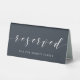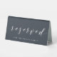 Custom-designed wedding reserved table sign featuring modern hand calligraphy with personalised text on dark navy blue colour background.