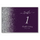 Modern Dark Purple Silver Glitter Edge Wedding Table Number