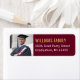Modern custom address label design features a graduation photo of the graduate with yellow gold and white return address text and dark red / maroon background. Customise the text and background colours to coordinate with the photo or school colours!
