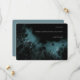 A modern dark wedding save the date card, sophisticated and moody with shades of teal and black. Minimal text on the front and back. Customise this dark save the date template with your own wedding information.