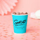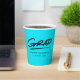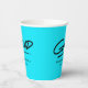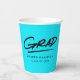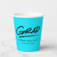 Modern graduation paper cups featuring "Grad" displayed in black, handwritten lettering with a dashed underline on a turquoise background (or colour of your choice). Personalise the turquoise graduation paper cups by adding the graduate's name and graduation year. The design repeats on the back. The personalised graduation paper cups are perfect for both high school and college graduation parties!