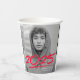 Modern graduation paper cups featuring the graduate's photo with "2025" displayed in red, handwritten lettering with a dash below. Personalise the photo graduation paper cups by adding the graduate's name and school name. The design repeats on the back. The personalised graduation paper cups are perfect for both high school and college graduation parties!