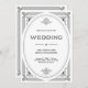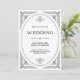 These glamourous black and white wedding invitations feature a modern spin on classic art deco. An ornate, black geometric frame and ornamentation decorate an elegant white background for a dramatic, vintage wedding look. The back has room for additional wedding guest details, plus a scannable QR code so guests can RSVP and respond online at your wedding website.