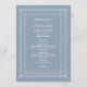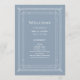 This glamourous wedding program features a modern spin on classic art deco. An ornate, white geometric frame and ornamentation decorate an elegant dusty blue background for a dramatic, vintage welcome program look.