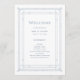 This glamourous wedding program features a modern spin on classic art deco. An ornate, dusty blue geometric frame and ornamentation decorate an elegant white background for a dramatic, vintage welcome program look.