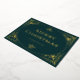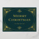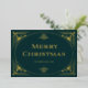 These glamourous holiday cards feature a modern spin on classic art deco. An ornate, gold foil geometric frame and ornamentation decorate an elegant emerald green background for a dramatic, vintage holiday look. Classic gold typography says "Merry Christmas."
