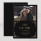 This Modern Deco Save the Date brings together timeless glamour and clean, contemporary style, making it a perfect fit for couples who want something elegant without feeling traditional. The faux gold accents highlight your photo with a warm, upscale glow, while the deep black background adds a confident, modern contrast that instantly catches the eye. It feels personal because your photo becomes the centerpiece, yet the Art Deco inspired lines give it a polished, celebratory vibe that looks beautiful on fridges, mood boards, and wedding planners. Designed for couples who appreciate minimal design with a hint of luxury, this card helps set the tone for a stylish celebration and makes guests look forward to the big day from the moment they receive it.