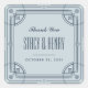 This thank you sticker features a vintage, art deco-inspired frame, and is the perfect seal for wedding reception party favours.