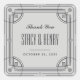 This thank you sticker features a vintage, art deco-inspired frame, and is the perfect seal for wedding reception party favours.