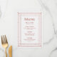 These glamourous wedding menus feature a modern spin on classic art deco. An ornate, festive red geometric frame and ornamentation decorate an elegant very light silver/white background for a dramatic, glamourous and vintage 1920's wedding look that is perfect for your Christmas holiday wedding.
