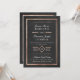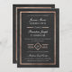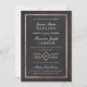 Wedding invitations on a faux rose gold foil effect and white text against a subtly chalkboard textured black background. Classic script and serif fonts. A simple art deco effect around the wedding date.
