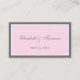 Traditional yet contemporary is the focus of this lovely place card. Soft pink bordered with white and charcoal grey make the base of this card. The white panel contains the name and table information. Add names and the event date on the reverse. Available in alternate colours with matching products.