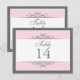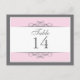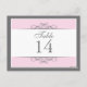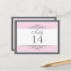 Traditional yet contemporary is the focus of this lovely table card. Soft pink bordered with white and charcoal grey make up the base. The white panel contains the table information. Double-sided design for convenience from any angle. Available in alternate colours with matching products.