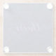 Modern and elegant deep blue bokeh design glass coaster with the text "cheers" in purple script handwriting. Easy to customise with your personal message. Text colour may be changed.