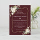 Modern Deep Burgundy White Ivory Flowers Wedding Invitation