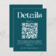 Modern Deep Teal Wedding Details QR Code Enclosure Card