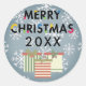 A pretty Christmas sticker with a modern style Typography design and gift box graphics and snowflakes background. The front reads "Merry Christmas 20XX" for you to change your preferred year