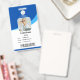 Design your own custom employee name tags and badges with our sleek vertical template. Easily incorporate your photo, company logo, and essential details. While these badges are designed with a modern aesthetic tailored for nurses, doctors, and medical professionals, you can effortlessly adjust the colours and information to match your brand or business. The background features an SVG graphic, allowing you to modify all four wave colours as well as the colour bars on both sides.