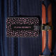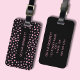 Modern black luggage tag with scattered dots pattern and modern text. Customise with your own name and contact details. Original art from artists own illustrations. Please use the message me button below for help with further customisation and special requests. © Zoe Chapman Design