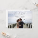 Announce your special day with our Modern Casual Double Sided Photo Wedding Save The Date. Featuring elegant handwritten calligraphy and a stunning ocean backdrop, this design is perfect for a black and white, casual romantic coastal destination wedding. The chic, trendy, and minimalist style makes it ideal for autumn or winter weddings. This rustic yet contemporary card offers a unique blend of elegance and simplicity, ensuring your guests mark their calendars with style.
