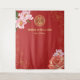 Red Double Xi Chinese Wedding Prop Backdrop Tapestry. Oriental red and peony blossoms flowers with double happiness symbol. An elegant and romantic asian themed wedding design which is modern and classy. The double happiness is a very auspicious and good luck symbol used in all chinese weddings and celebrations.