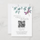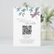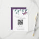 This simple modern garden greenery wedding RSVP and Details card with QR Code features a watercolor dragonfly in shades of purple and pink. It is resting on a simple arrangement of natural watercolor garden greenery on a white background. The back is a solid deep purple that matches the dragonfly. Just add your wedding website URL, so your guests can scan the QR Code and easily respond and view all of your wedding details.