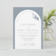 Modern Dusty Blue Arch Botanical Script Wedding In Invitation