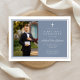 Modern Dusty Blue Boy Photo First Communion Invitation