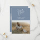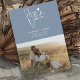 Announce your special day with these minimalist modern cards with a handwritten calligraphy script Save The Date against a dusty blue background. Easily customise your personal information and photo on the front and back to make it your own.