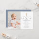 Modern Dusty Blue Cross Boy Photo Baptism Invitation