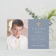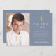 Modern Dusty Blue Cross Boy Photo First Communion Thank You Card
