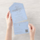 Modern Dusty Blue & Faux Gold Calligraphy All In One Invitation