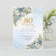 Modern Dusty Blue Floral Gold 80th Birthday Deluxe Invitation