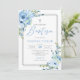 Modern dusty blue floral silver frame boho baptism invitation
