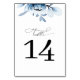 This table number design features soft dusty blue florals on a clean white background. The layout uses simple typography for a modern and elegant look. It pairs well with dusty blue, spring, and garden wedding themes and adds a fresh floral touch to any reception table.