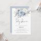 Modern Dusty Blue Florals Baby Shower. Available digitally and printed. Elegant florals in summery light blue and white, flow down from the top. Baby Shower is in a set handwriting style script. Easily personalise the rest of the text to your own details.