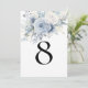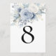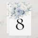 Dusty Blue Florals Table Number. Easily personalise the table number. The same design is on the other side and will update simultaneously.