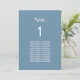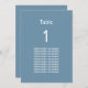 Modern Dusty Blue Guest Names Table Card, easy to personalise in the online personalisation template in order to show the table number for the appropriate table and the guest names for that table. The design copies across to the other side of the card automatically so as to help guests to find their table from either side of the table. Featuring a simple plain modern minimalist design layout, this stylish table card incorporates space around the text elements to allow for choice of display methods such as hanging or framing the card.