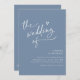 Modern Dusty Blue Handwriting Heart Wedding Invitation