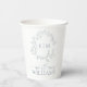 Modern Dusty Blue Leafy Crest Monogram Wedding Paper Cups