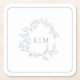 Modern Dusty Blue Leafy Crest Monogram Wedding Square Paper Coaster