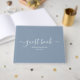 Elegant dusty blue wedding guest book with modern script. Easily personalise online. Matching items available to complement this minimalist dusty blue wedding guest book.
