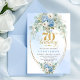 Modern Dusty Blue Peonies 70th Birthday Invitation