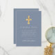 Modern Dusty Blue Religious Boy First Communion Thank You Card