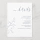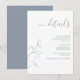 Introducing the Modern Dusty Blue Script Botanical Wedding Details Enclosure! This beautiful card is perfect for adding a personal touch to your wedding invitation suite. Designed to coordinate with wedding invitation in the same theme, the modern floral line art and elegant calligraphy make this card a stunning way to include all of the important information for your guests. You can even include your wedding website on the card for easy reference. The card holds up to 26 lines of text, so you can be sure to include everything you need. Whether you're looking for a way to add a personal touch to your wedding details or just want a beautiful and modern way to include all the important information, the Modern Dusty Blue Script Botanical Wedding Details Enclosure is perfect for you! Contact designer for matching products. View collection here: https://www.zazzle.com/collections/modern_dusty_blue_script_botanical_wedding-119659612650899450 Copyright Anastasia Surridge for Elegant Invites, all rights reserved.