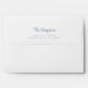 Modern white envelope with your family name monogrammed in a stylish dusty blue script and your return address in classic dusty blue serif typography.