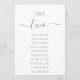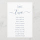In the upper part, there is the table number written in a handwriting script and the word Table above, in smaller caps (hand letters). Under them, there are the 10 guest names, in similar hand letters. All text is dusty blue, the background is white.